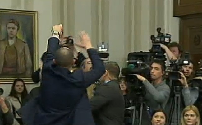 Тя започна да задава провокативни и обидни за президента въпроси и бе изведена. Чуваше се как вика, че иска да си прибере вещите, пише 24 часа.