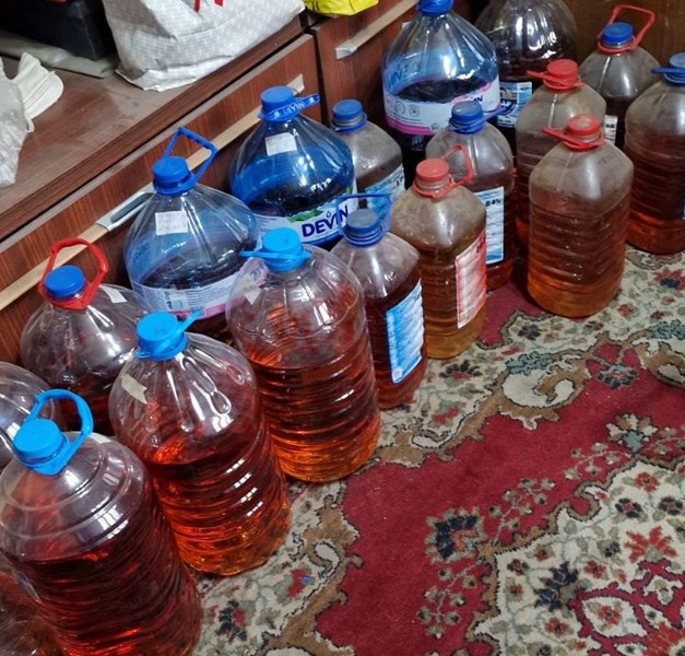 При щателния оглед на помещенията служителите на реда установиха наличието на около 530 литра течност с характерен мирис на спирт, за която се предполага, че е ракия. Съдовете били разпределени в различни стаи на къщата.