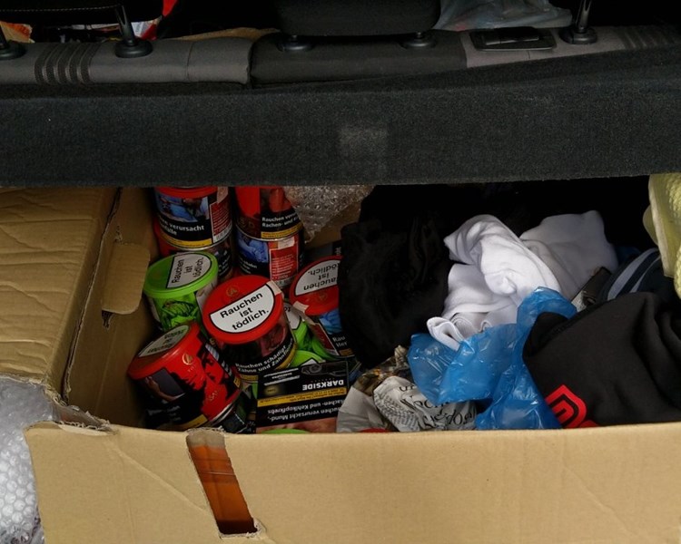 В автомобила, управляван от него, са намерени и иззети 331 кутии - с общо тегло 66.5 килограма, различни марки тютюн за наргиле без акцизен бандерол.