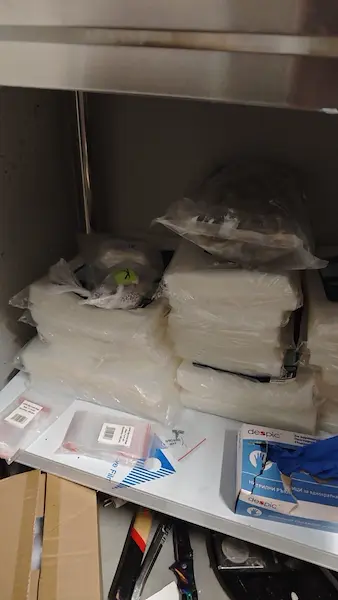 При претърсванията на различни локации, използвани от участниците в престъпната схема, разследващите са се натъкнали на огромни депа за съхранение. Според актуализираната информация, разпространена от главния секретар на МВР Георги Кандев, конфискувани са 200 килограма марихуана, над 10 килограма кокаин и 50 килограма амфетамин. При първоначалните обиски бяха отчетени и по-малки количества екстази и метамфетамин.