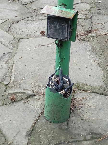 За кого стърчат тези кабели в двора на УМБАЛ "Канев", омотани в изолирбанд, за сега не е ясно.