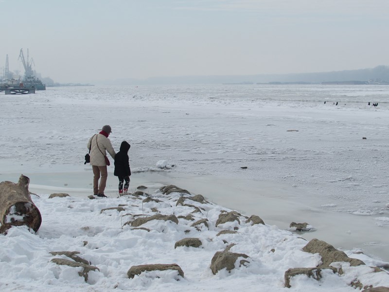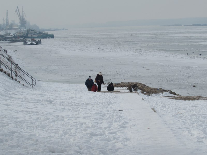 От русенското речно плаване предупреждават смелчаците, каквито не липсват, че ходенето по леда на Дунав е много опасно.