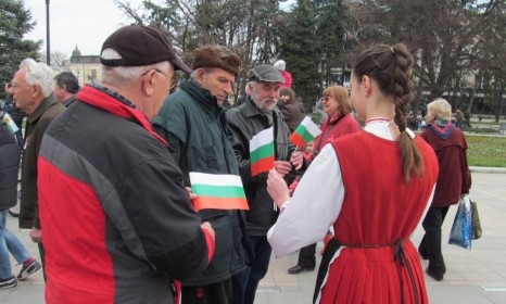 По случай 138-та годишнина от Освобождението на България, момичета, облечени в традиционни носии раздаваха флагове с българското знаме, осигурени от Община Русе.