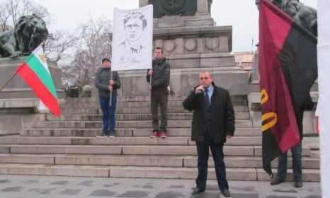 През цялото време те сканцираха патриотични лозунги, както и напомнящия днешната годишнина "Героите не умират“.