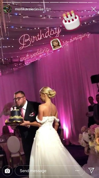 Влюбените гълъбчета си казаха „да” в началото на месец юли, но големият купон бе отложен за 12-и, когато е рожденият ден на бизнесмена.