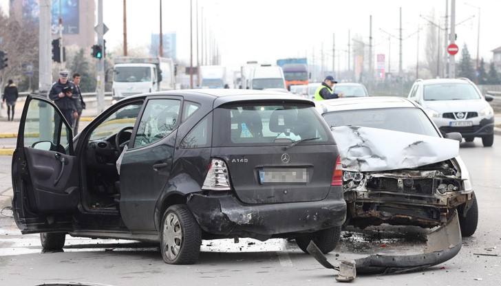 Лек автомобил Мерцедес е излязъл на булеварда и е засякъл каращия в дясната лента "Опел".