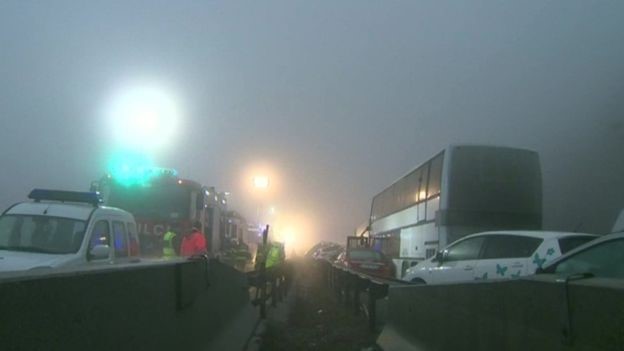 Инцидентът се е случил поради гъста мъгла на важна магистрала, свързваща столицата Любляна с Адриатическото крайбрежие.