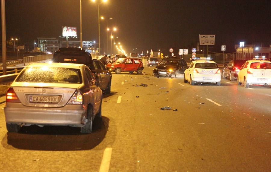 Верижна катастрофа с шест автомобила затвори Околовръстен път на София, в района на разклона за квартал Драгалевци.