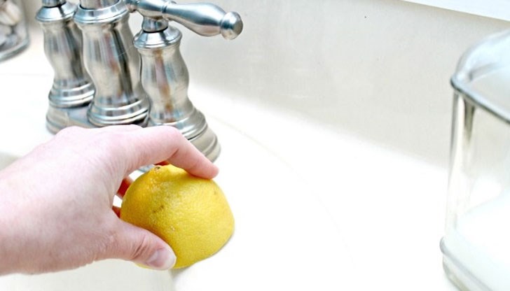 Лимонът е прекрасен както за порцелан, така и за емайлирани фаянсови повърхности в банята. По ваната и мивката остават мръсни петна с тъмножълт или кафяв цвят. Втрийте в тях половин лимон. Той действа абразивно и ще премахне наслагванията по гладките повърхности в банята.