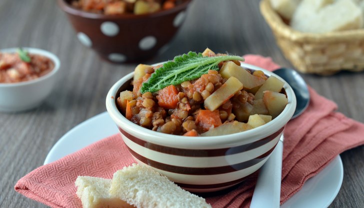 Обяд: Боб на фурна с месо, голяма зелена салата