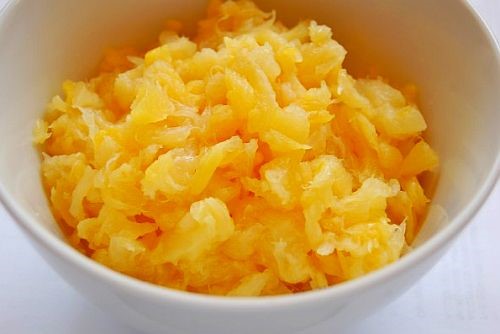 От останалата част след прецеждането може да си приготвите портокалово сладко. Просто добавете кафява захар на вкус и 1 чаена лъжичка лимонена киселина. Сложете на умерен огън и разбърквайте периодично, докато се сгъсти.
