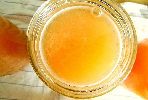 В прецедения сок добавете 6 литра вода, 800 грама кафява захар (или 500 грама мед) и 30 грама лимонена киселина. Разбъркайте всичко, изсипете в стъклени бутилки (или големи буркани) и оставя да престои в продължение на около час.