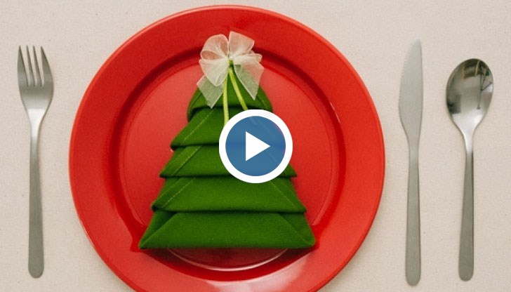 Ако все още нямате идея как да украсите празничната трапеза довечера, ще ви предложим една чудесна техника как да сгънете текстилна салфетка като елха и да предадете коледно настроение на всички на масата.