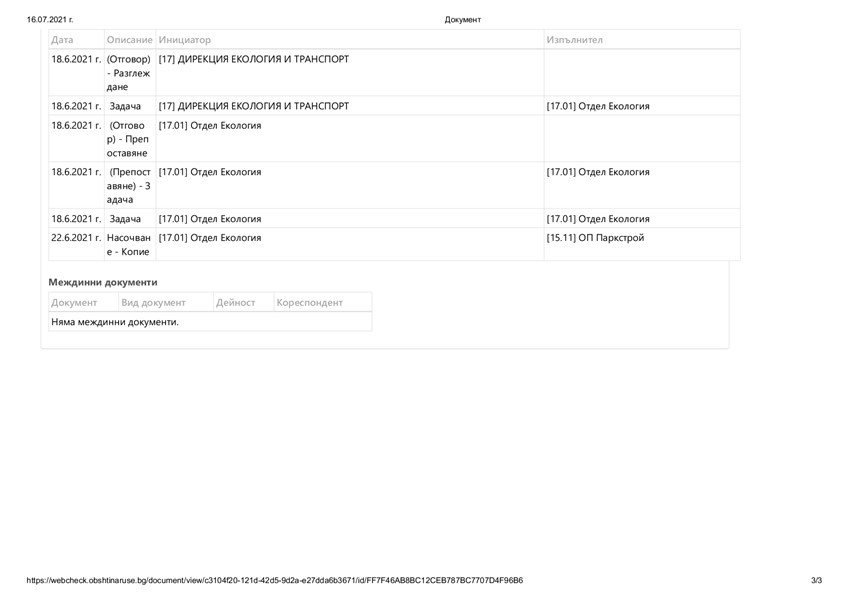 И започна голямото чакане. Периодично проверявах какъв е статуса на сигнала. След като видях, че на шестият ден е пренасочен към ОП Паркстрой се обнадеждих, че все пак нещата ще се случат. Да, ама не. В крайна сметка след 21 дена чакане, търпението ми се изчерпа и реших да посетя на място ОП Паркстрой, за да разбера кога евентуално ще дойдат да погледнат и да почистят. След обстойно ровене в някаква папка ми се отговори, че такъв сигнал не е пренасочван към тях и няма как да дойдат след като ресорният им заместник кмет не им е възложил подобна задача. Чудех се на тях ли да вярвам, на сайта на общината ли да вярвам. Препратих им на email документа от който е видно кога е пренасочено към тях, с молба да ми върнат обратна информация. Днес е деветият ден в който чакам да ми отговорят, и месец от както съм подала сигнала. За този период от време имаше още един порой, ден след първия, тинята изсъхна и всичко е в пепел и мизерия, шахтите са затлачени. Имаме две площадки, фитнес и за деца до тригодишна възраст, те също са в мизерия и прах. Чудя се как някой може да донесе тригодишното си дете да диша тази мизерия.