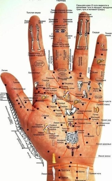 Вгледаме ли се по-сериозно в тях, можем спокойно да разберем какво точно ни мъчи и да вземем необходимите мерки, пише Skafeto.com. Нещо повече – съществуват много на брой точки по самите длани, които ако стимулираме по всякакъв възможен начин (затопляне, масажиране, натискане или намазване с ефирни масла), то ще подпомогнем работата на вътрешните органи на организма ни /виж снимката/.