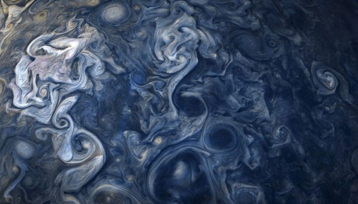 Кадърът е заснет от космическия апарат „Юнона“ на 24 октомври. Тогава сондата се е намирала на 18 906 километра от горния слой на облаците. Приблизително същото разстояние отделя Ню Йорк от Австралия, предава БТА.