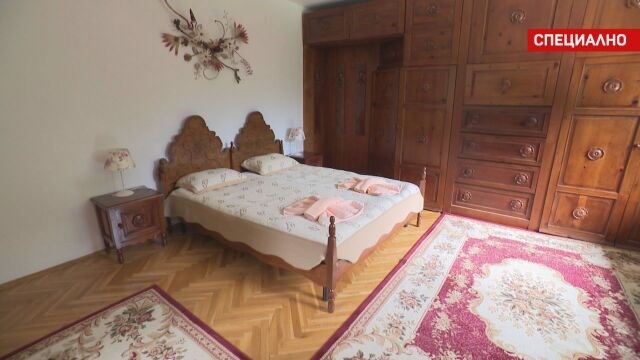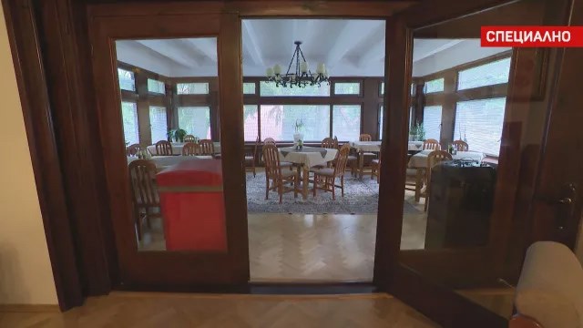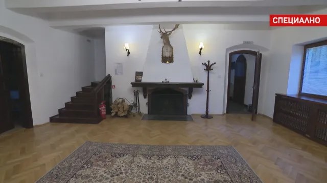 Посреща ни управителката на къщата. Тя е на тази длъжност от три години. Разрешение да застане пред камерата ни няма. Разказва ни обаче, че там работят общо 17 души, сред които готвачи, охранители и шофьор снабдител. С нея първо влизаме в основната къща. На първия етаж има голяма трапезария. На втория и третия етаж са разположени общо четири апартамента.