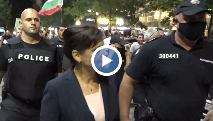 Час и половина след участието ѝ в предаването "Панорама" се наложи Дариткова да бъде изведена от полиция, а униформените -да направят кордон между протестиращите и автомобила ѝ, а депутатът бе изведена от колата.