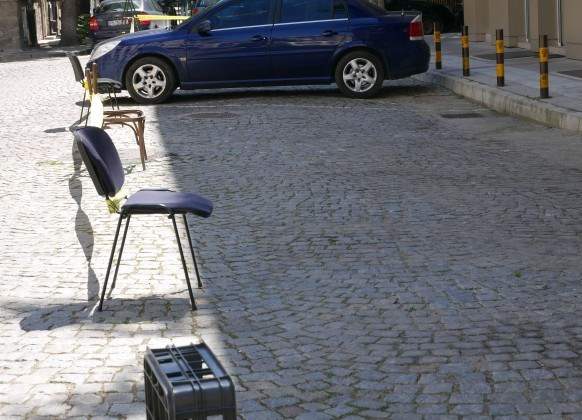 Щайга, изпочупени столове и стълбичка очевидно са влезли в роля на антипаркинг колчета. Особен респект обаче всява полицейската лента, която обикновено органите на реда разпъват на местопрестъпления. В случая обаче се касае единствено за опит за резервиране на паркоместа пред сградата на главното управление на улица "Княз Богориди" в сърцето на Пловдив, обясниха от институцията.