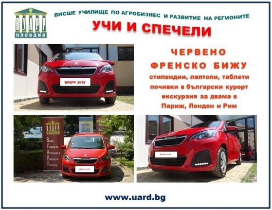С този призив частното Висше училище по агробизнес и развитие на регионите (до 2011 г. - Висше училище „Земеделски колеж”) привлича студенти в разгара на настоящата кандидатстудентска кампания.