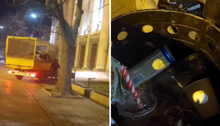 От кадрите се вижда как служителят по чистотата бърка в кошчетата за боклук с ръце и хвърля отпадъците в каросерията на камиона. След него обаче остават наполовина пълни кошове и боклук около тях.