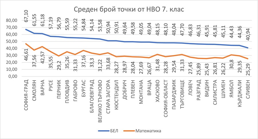 При седмокласниците се забелязва леко повишаване на оценките по български език спрямо, а оценките по математика са сходни с миналогодишните. При десетокласниците има ръст на оценките по БЕЛ, но и лек ръст на оценките по математика.