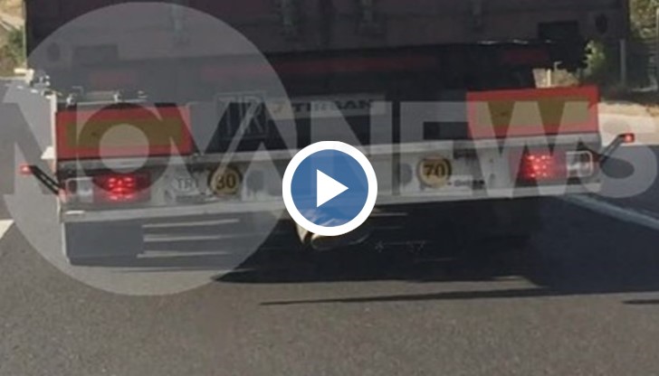 В рубриката „Моята новина” на Нова тв е пристигнало видео, на което се вижда как крак на човек виси от каросерията на камион, пише Petel.bg.