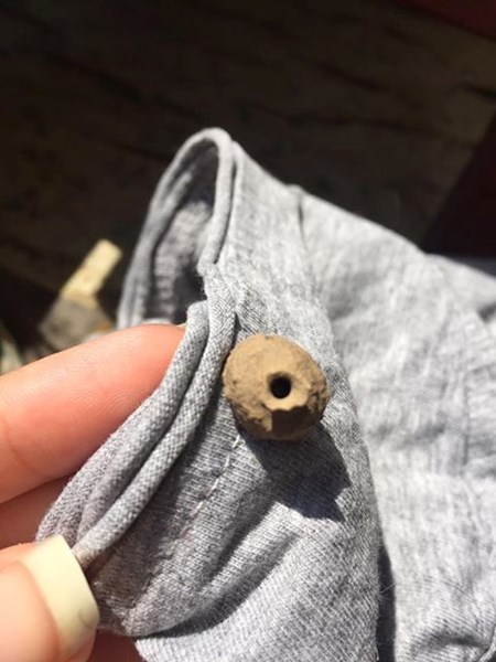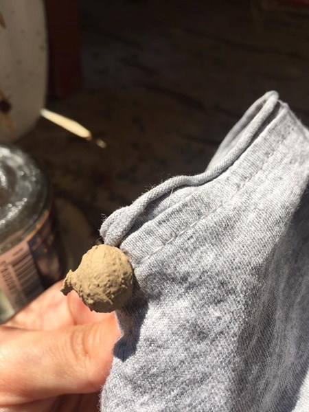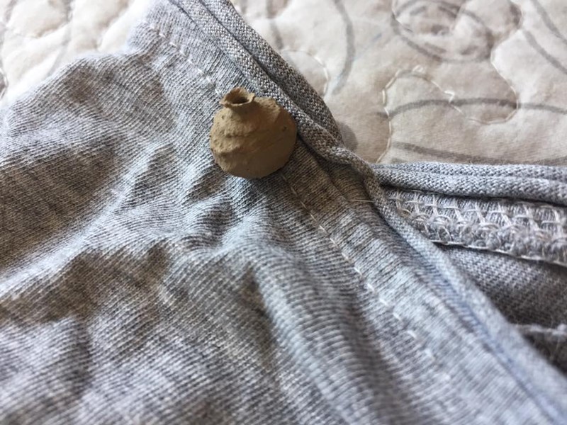 "Някой знае ли какво е това чудо, което намерих върху тениската си в гардероба? Като хралупа е и не знам вътре какво има...", споделя с удивление жената. Малко по-късно тя се престрашила и отворила гнездото, в което открила оса.