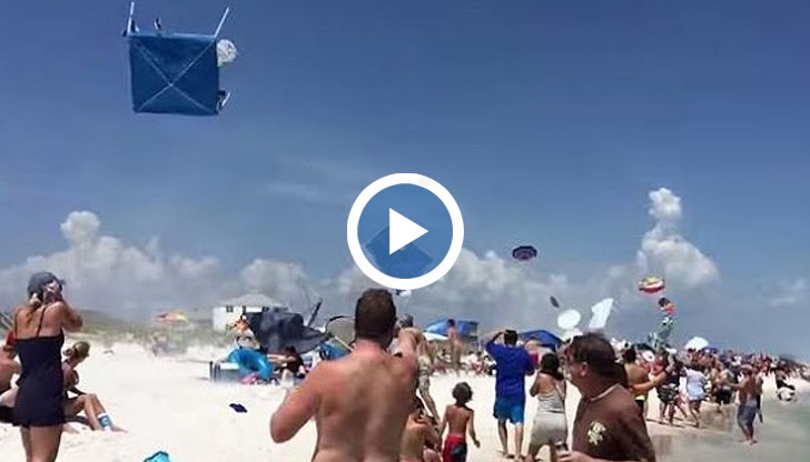 Преминаването на свръхзвуковия самолет буквално вдига във въздуха плажните чадъри и тенти.