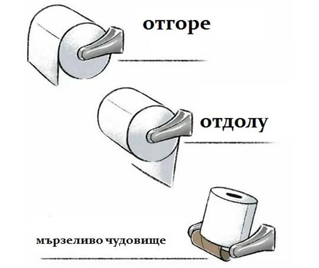 Има и трета група, която поставя рулото върху стойката. Тях психолозите шеговито наричат „мързеливи чудовища“.