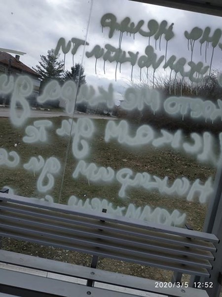 Вандали счупиха стъкло и изрисуваха със спрей спирка в квартал "Долапите" в Русе.