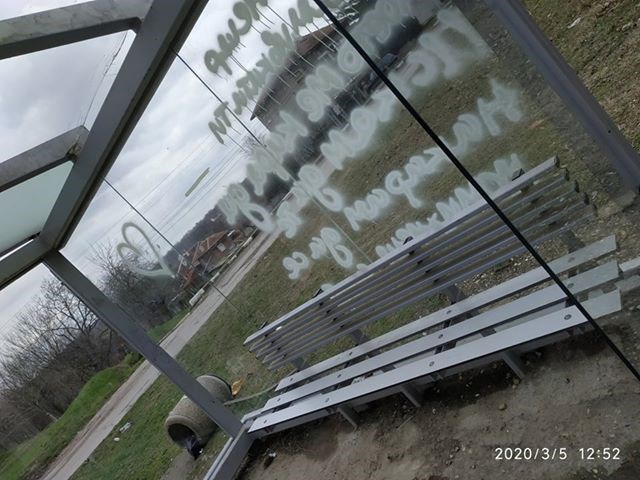 "Някои наркоманчета или лапета са надраскали спирката със спрей, счупили са стъклото горе, коша от единия край е хвърлен на другия, въпреки че много тежи. Не стига че тези "стъклени" спирки нищо не пазят от от дъжд, сняг и вятър, че и като ги изпочупят още по-зле. Какво им пречат спирките?!", пита тя.