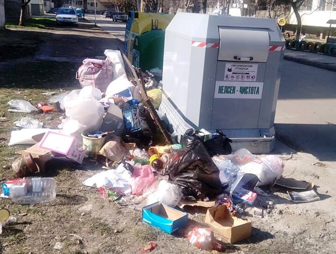 Целия квартал изглежда така в около контейнерното пространство. Вярно, че е време да приемем всичко за нормално, ама едва ли точно тези гледки някой може да асимилира като ок!