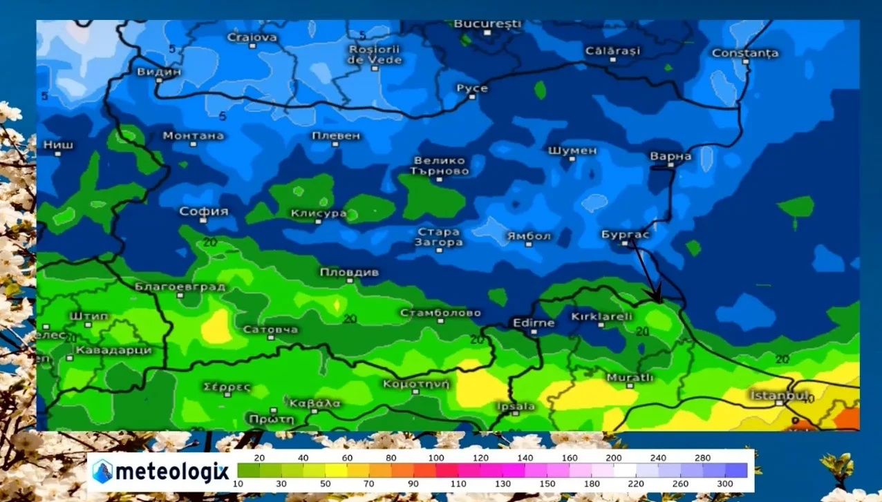 Промяната във времето ще донесе и валежи, предимно в Южна България. Макар интензитетът им да не е висок, ниските температури ще създадат условия за сняг. В нощните и сутрешните часове дъждът ще преминава в снежинки на места в Предбалкана, Лудогорието и западните полета.