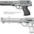 Револверът можел да работи с два типа патрони - широко популярният 5.45x39 мм и .410. Цевта била удължена, за да може пистолетът да е точен, а в барабанът му имало място за 5 патрона.
