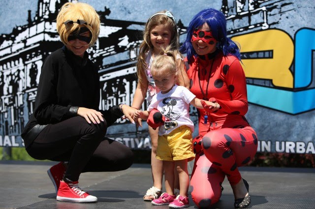 Днес, пред хотел „Дунав плаза“ Калинката и Черният котарак се включиха в първия за града ни фестивал за улично изкуство „3D-светове в градския щрих на Русе“.
