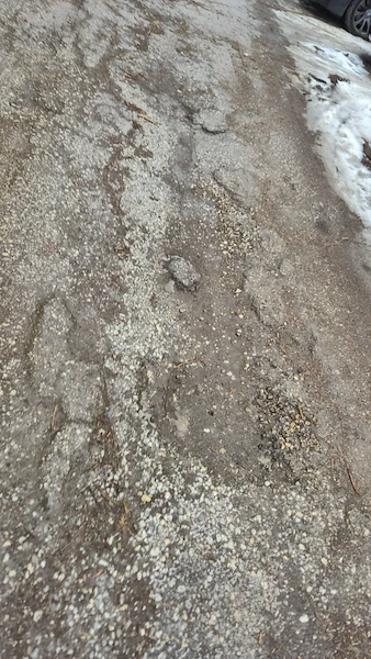 По-тревожното в сигнала му е наличието на директна заплаха за здравето на преминаващите. "Има 2 канализационни шахти, около които са се оформили ями и има реална опасност скоро да се срутят навътре", предупреждава той.
