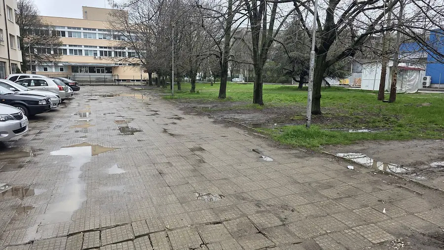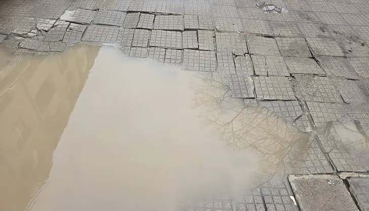 Снимки от мястото показват десетки разместени, начупени и липсващи тротоарни плочки, които са образували дълбок кратер, събиращ дъждовната вода. Резултатът е непроходимо кално езеро, което принуждава живущите в района да заобикалят през калта или платното, рискувайки безопасността си. Подобна гледка е емблематична за забравените от местната власт вътрешноквартални пространства, които рязко контрастират с ремонтираните централни зони на града.