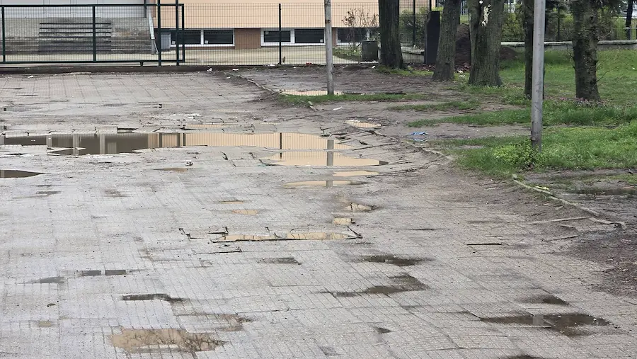 Разбити плочки и кални кратери