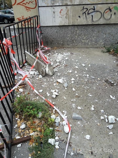 "Камъните падат! Къде? От балконите на блока на активните борци. Само, че не са камъни, а бетонови елементи по 180 кг. Градските легенди твърдят, че те са "творение" на ...... майката на сегашния ни главен архитект. Цяло щастие е, че още няма нещастен случай", сподели Никола Генов.