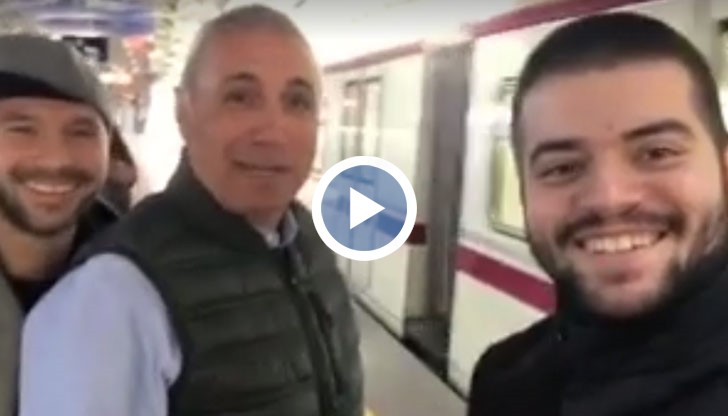 В интернет пространството се появи видео, на което се вижда как легендата на родния футбол се кани да се качи в столичното метро от спирка "Летище София".