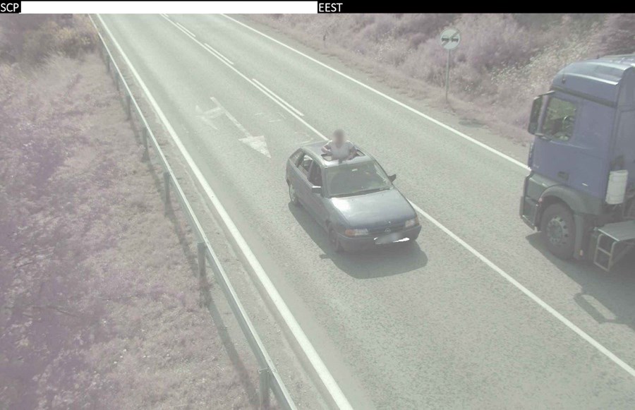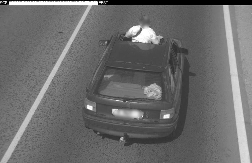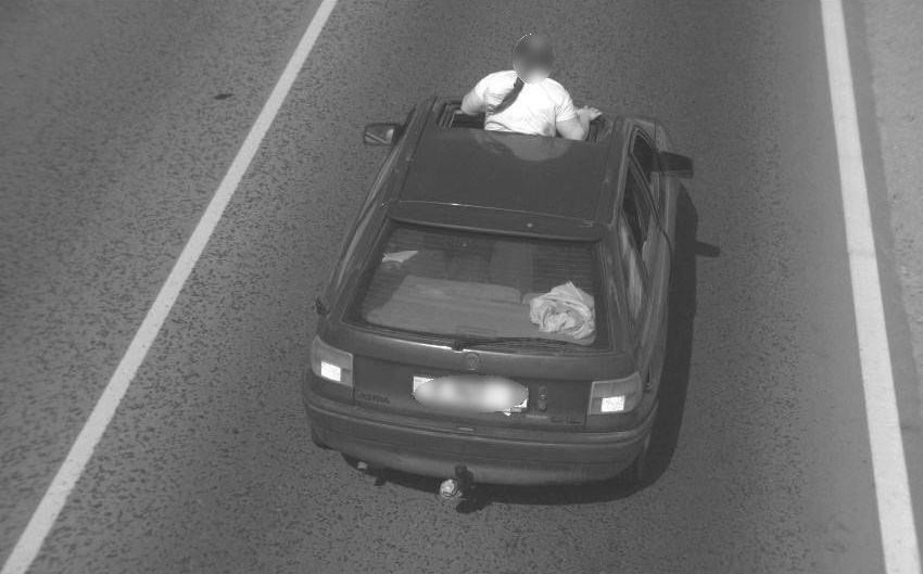 Камерите на Агенция "Пътна инфраструктура" записаха първия си санкциониран случай след свързването със системите на Пътна полиция. Техническо средство на АПИ, разположено на път I-4 в района на Омуртаг, засне лек автомобил да се движи към Търговище, като през отворения му люк на покрива се подава пътник.