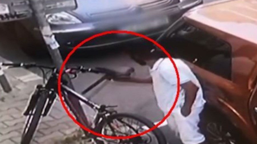 Велосипедът е бил заключен с верига към стълб на столичната улица "Иван Асен", съобщава NOVA. В един момент обаче към колелото се приближава мъж с хипарска прическа, оглежда се няколко пъти и бързо я измъква от велосипеда.