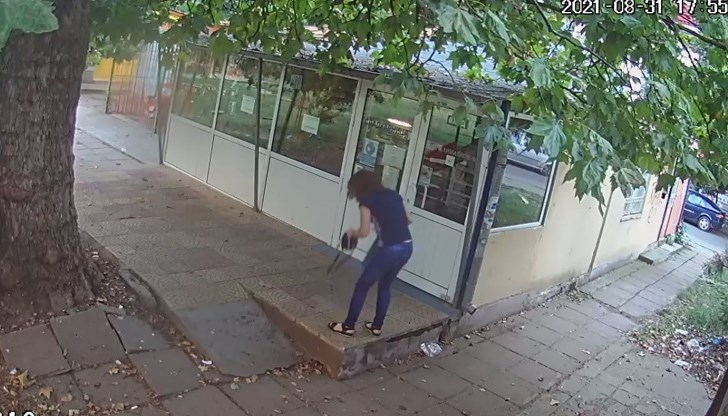 Камери заснеха как жена краде детска чантичка пред сладкарница в Русе