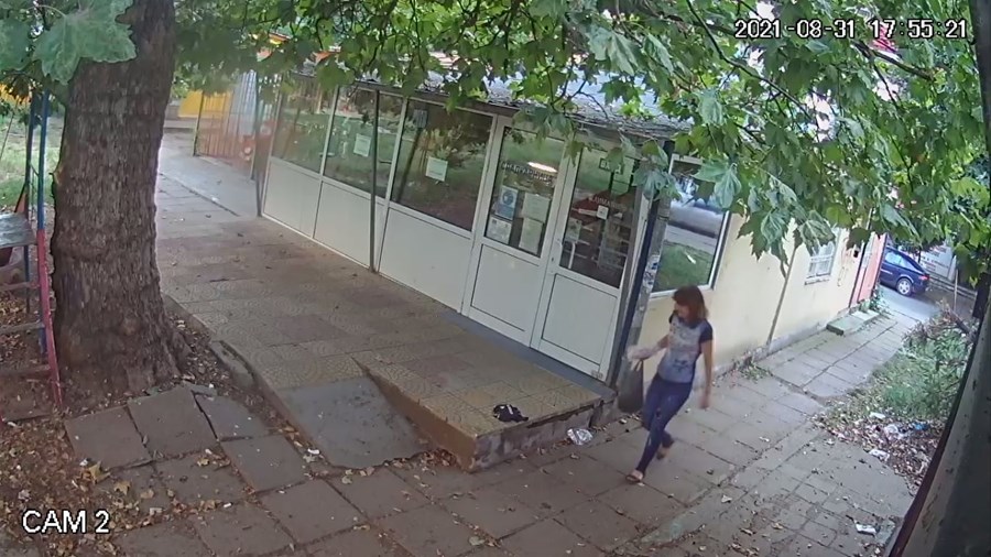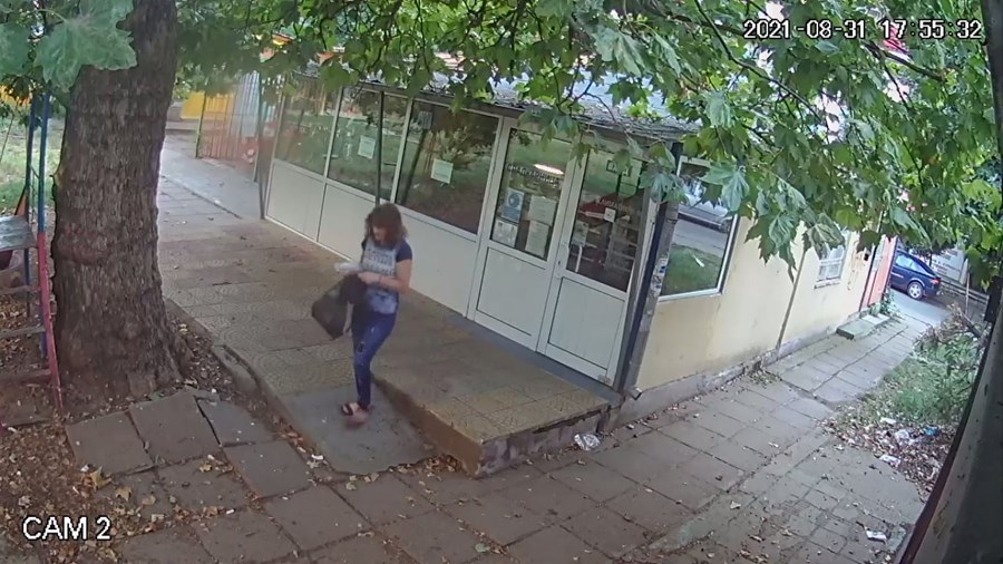 В този момент от кадрите се вижда как жена, минавайки оттам, вижда чантата, навежда се и я взема със себе си. Вътре е имало само телефон и пари.