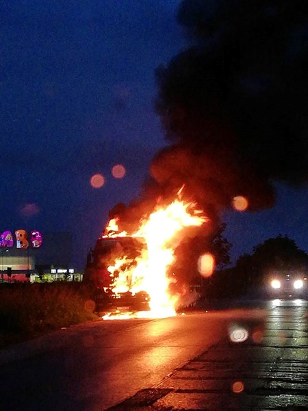 Според тях шофьорът се е измъкнал от горящия камион навреме и е добре.