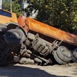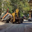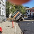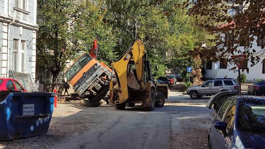 Камион пропадна в изкоп на ВиК в центъра на Русе