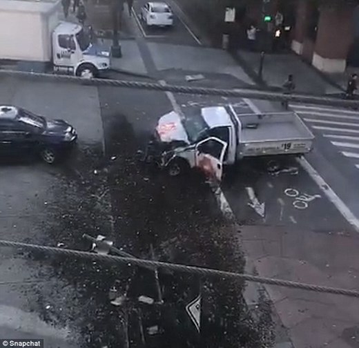 Камион се е врязал във велоалея в Долен Манхатън в Ню Йорк и е била открита стрелба.