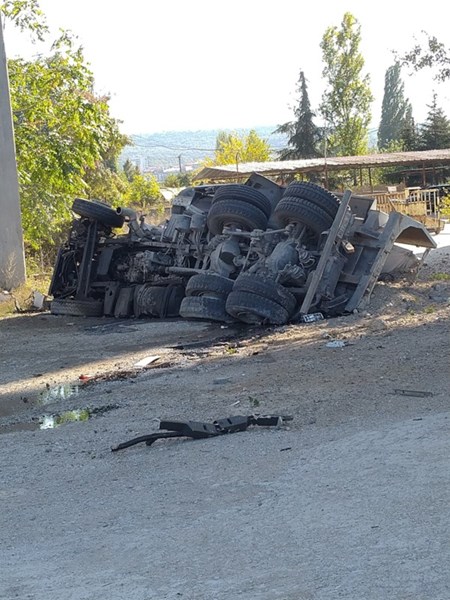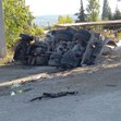 Инцидентът е станал малко след 14:15 днес. Товарният автомобил се е движил в посока към Бургас и е скъсал мантинелата и парапета.