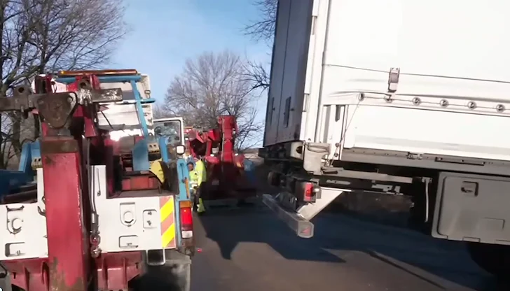 Три ТИР-а се завъртяха и затапиха международното трасе към Дунав мост 2
